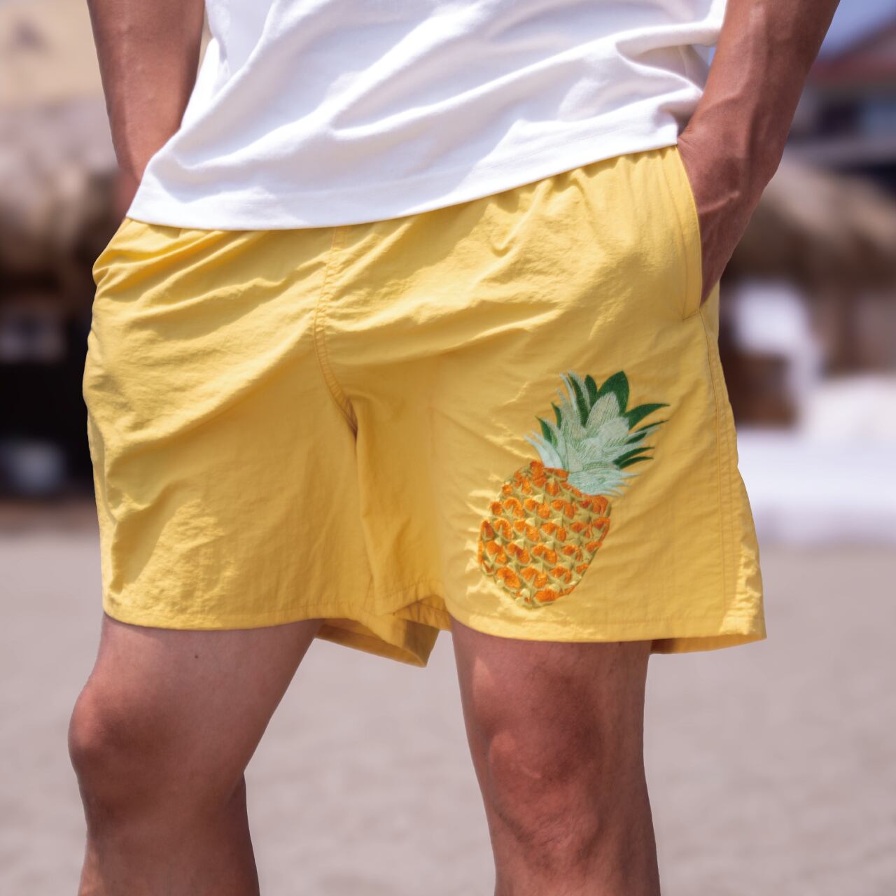 「幅の広いサテン縫いを大胆に組み合わせることによってパイナップルのゴツゴツとした硬さと立体感を表現しました。